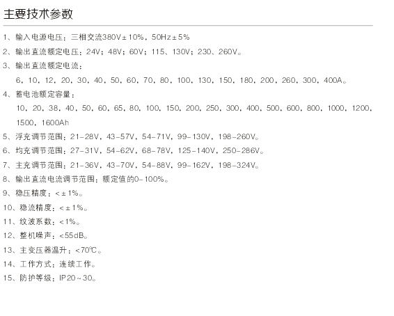 1、規(guī)格齊全:該系列產(chǎn)品共有十種型號(hào)幾百種規(guī)格,能完全滿足大中小型發(fā)電廠、變電站和各行業(yè)對(duì)直流電源的需求。